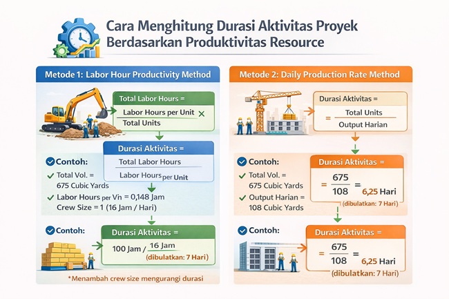 Secara umum, terdapat dua metode utama untuk menghitung durasi aktivitas proyek berdasarkan produktivitas.